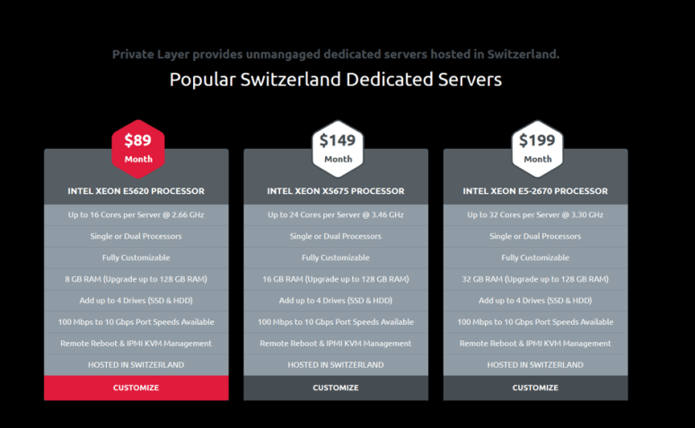 Let’s have a look at the price list of Private Layer. The smallest server there costs 89 US dollars per month. The servers on offer are not exactly up to date from a technical point of view. They have a processor that Intel introduced to the market in 2010, and it is therefore difficult to compare the server rental price with those of competitors: finding vendors with such outdated hardware is not easy.