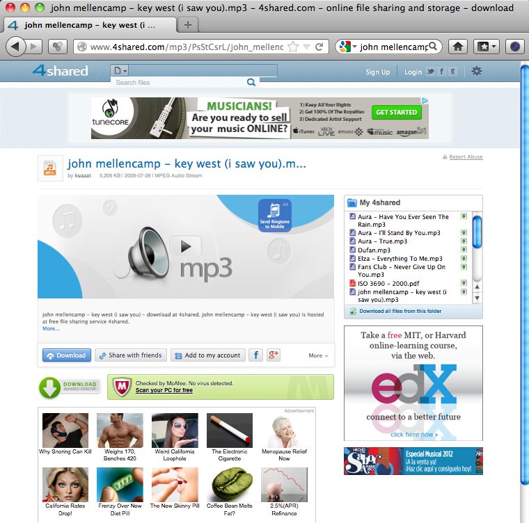 When doing random searches on illegal and infringing sites, you never know whose ads might pop up… Artists pay Tunecore to distribute their albums and music on paid platforms, and Tunecore pay’s pirate site 4Shared to give the artists music away for free…
