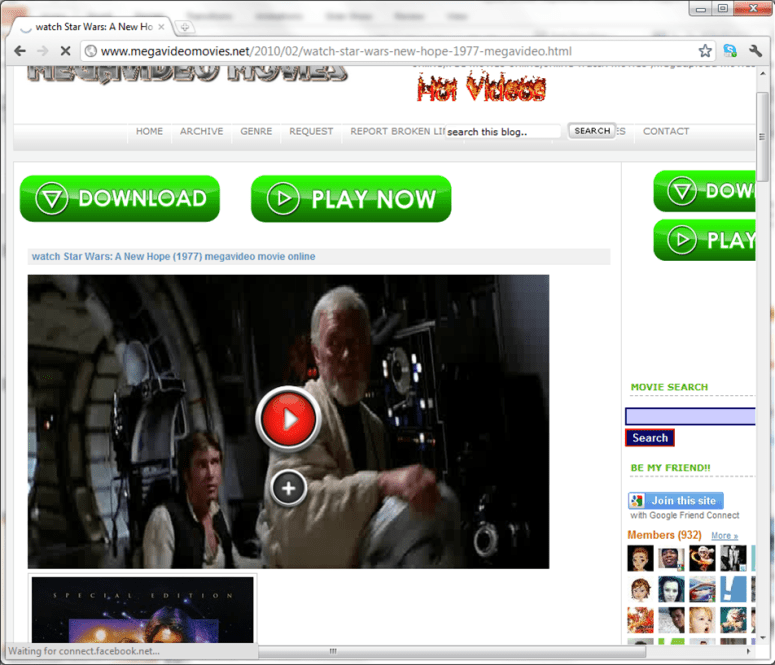 Megavideo let you play the first 45 minutes of Star Wars and thousands of other movies for free (after they had served you and profited from dozens ads) . . .