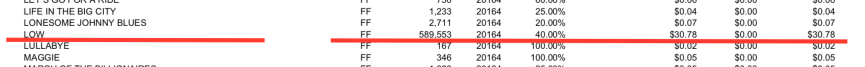 As an example, second quarter June 2017 my 40% ownership in the song “Low” earned me performance royalties of $30.78 cents for 589,553 YouTube streams. For a 4:36 second song that is over 5 years of music. So if you listened to music for 5 years straight 24 hours a day on YouTube the performance royalty to all songwriters would be $76.95. Since no one listens to music 24 hours a day this is clearly decades of music. YouTube is able to exact this usurious royalty rate, because they can simply threaten to not pay it and tie songwriters up (no pay) for years in the DOJ “consent decree” regulatory process. This is essentially what Pandora did a number of years ago. Surprise surprise, this tends to depress the market value of songs.
