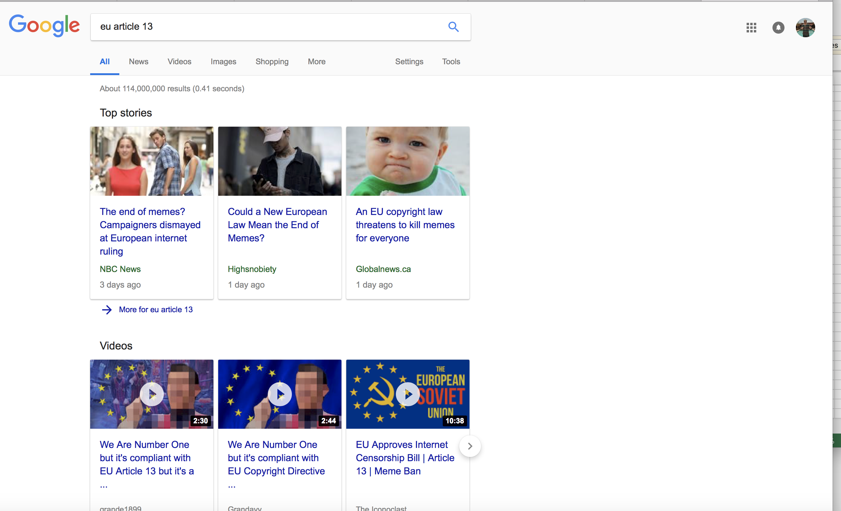 Think it’s a coincidence that Google’s search algorithm returns exclusively negative or outright fake news on EU proposed copyright revisions?