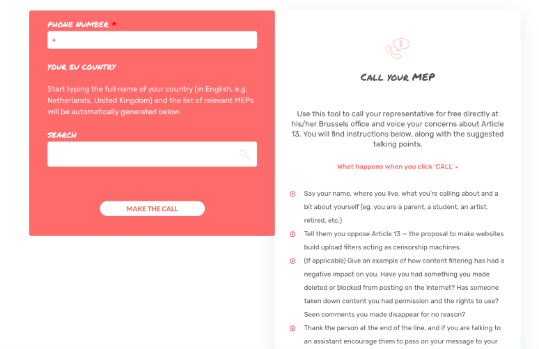 SaveYourInternet.eu website allows anyone to repeatedly robo call MEP. MEPs of their choosing. So they can target specific MEPs. This is how they hack democracy.
