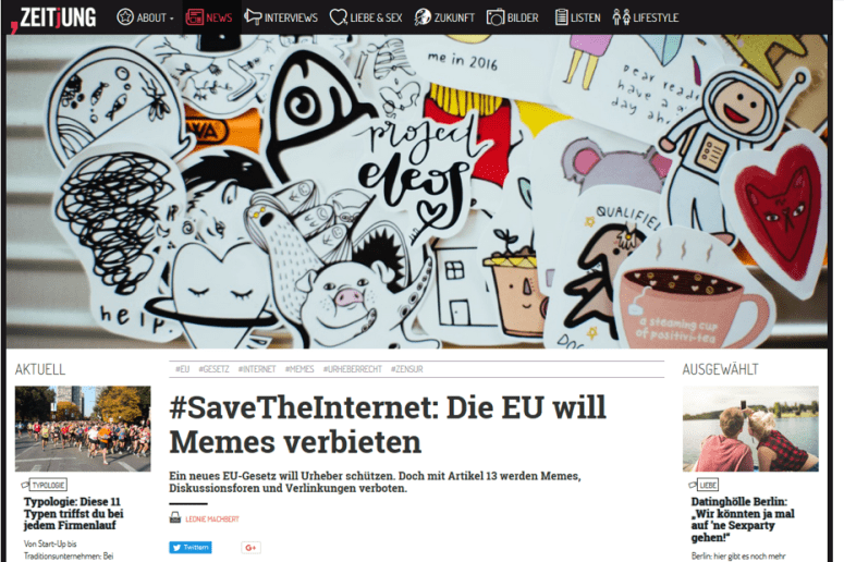 Illustration: Screenshot from Zeitjung.de. “The EU wants to ban memes”
