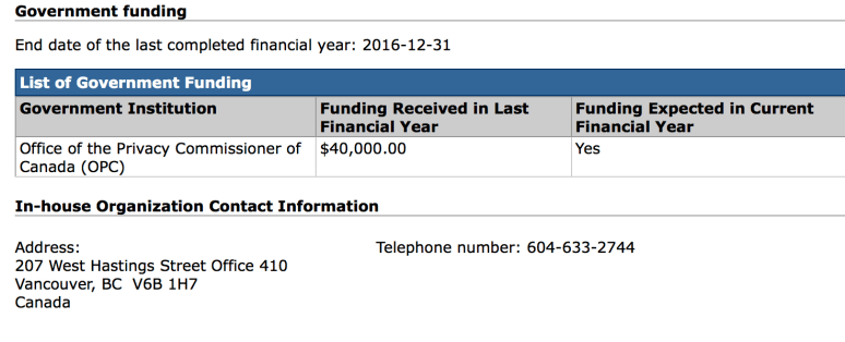 Office of the Privacy Commissioner of Canada provided funds to one of the Google backed astroturf groups engaged in a spam email campaign against Canada’s Minister of Foreign Affairs Chrystia Freeland. The emails urge her to reject the NAFTA treaty based on objections to IP provisions that would strengthen rights of Canadian artists.