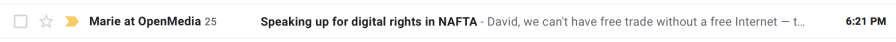 Now it appears that Open Media is trying to torpedo IP protection provisions in the NAFTA treaty. They are sending out dubious emails that speculate wildly or mischaracterize the facts. These emails are directed at Canada’s Foreign Minister and they make wild and unsupported claims about NAFTA IP provisions. Also the spam email has a curious little “rider” paragraph at the end that seems to imply that TPP has been a disaster for Canada. Is that true? It’s only been in effect a few months! So a by-product of this campaign is it falsely gives the impression that hundreds of thousands of Canadians are upset with the TPP. I find it extremely unsettling that the Office of Privacy Commissioner of Canada provided funds to an opaque Google-funded organization that is attempting to undermine the Canadian Prime Minister on trade policies. Shouldn’t this activity be reported as lobbying or something?