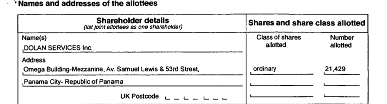I’m using this archive of the Panamanian companies because I can’t seem to find Dolan Services in the Panamanian registry any longer. It’s possible that I’m not searching properly as I do not speak Spanish. Strange. (Any help here is appreciated).