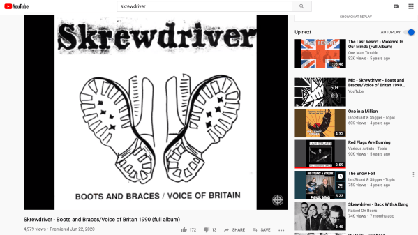 Fortress, Kill Baby Kill, The Bully Boys, Skrewdriver, Final War, etc.  The gang is ALL there!  And not all these videos were “user-generated content.” Many of these were official uploads by music distributors like CD Baby (Bully Boys).  And of course, many of these videos were monetized by YouTube.