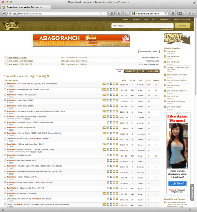 (According to Google, the websites in this screenshot — filestube, 4shared,Kat.ph and Dilandau — are the #1, #6, #11, and #8 top copyright infringing sites in the world.)