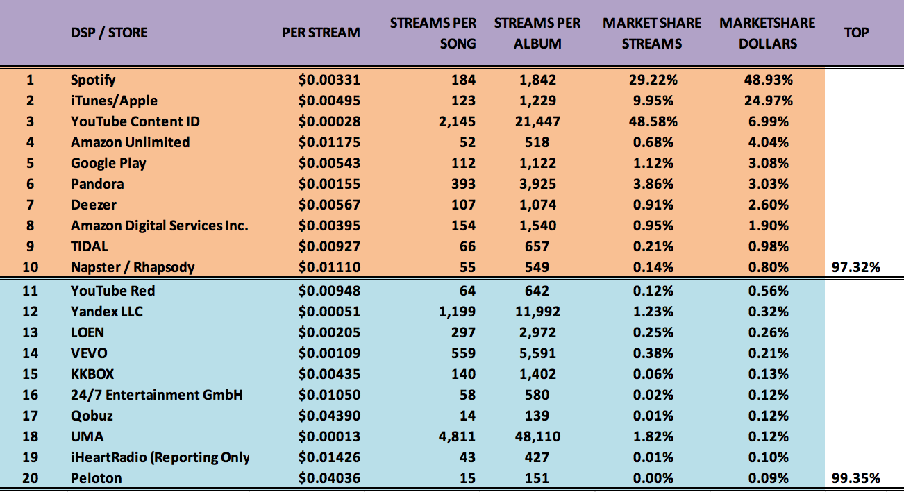 Here’s the sad reality broken down to current per-stream rates that are entirely based on service revenue: